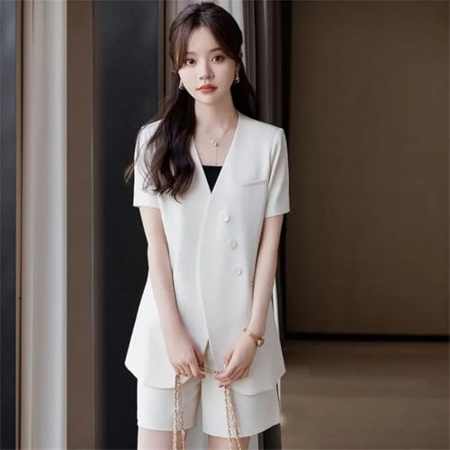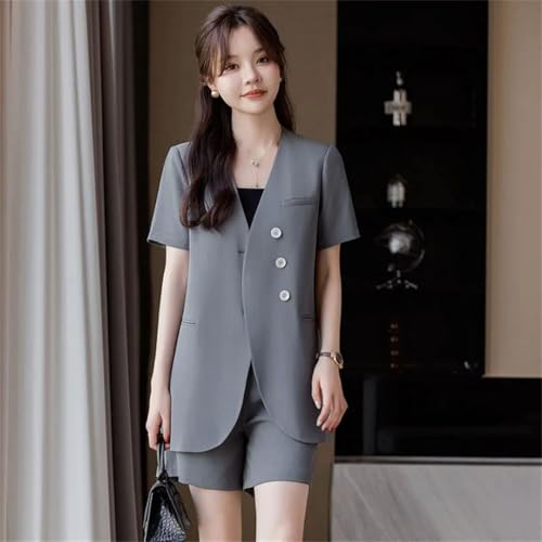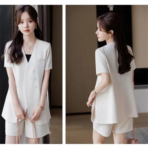 Conjunto de dos piezas para mujer, blazer de manga corta y pantalones cortos, elegante conjunto de 2 piezas para mujer, Negro, S